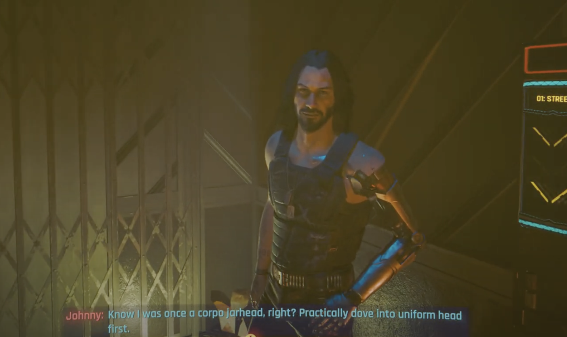 Johnny loves to hear himself talk, and thus voices his opinions constantly. At first, he's hostile and snarky to the player, but the player is forced to spend time with him. After all, he can't necessarily go anywhere. Johnny slowly reveals more about himself and his opinions of certain parts of the world. He reacts to events throughout the game as well. In the game's expansion, Phantom Liberty, the player can take an oath to essentially become the in-universe version of a CIA operative. After taking the oath, Johnny will pop up and express that he doesn't approve. Throughout the game, he often expresses his extreme disdain for corporations and the deeply late-stage über capitalism that plagues the world. This time, however, he provides a far deeper reason for his disdain. He reveals that he had fought for the NUSA voluntarily when he was younger and was eager to do so. "Practically dove into the uniform," he says. At that time, they had also required him to take an oath, but now he doesn't remember what the oath was. What did he pledge to? It's not meant to swing the player one way or the other but it's meant to make the player think about their choice.