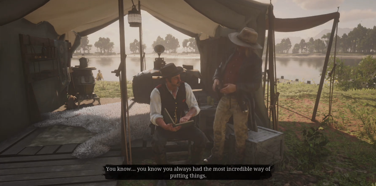 In a gang that is rife with infighting, Arthur finds himself placing his trust in the women he's surrounded by most. Mary Beth, one of the gang members, often sits with Arthur to provide advice. Sadie gives Arthur a shove when he needs it. Abigail, another member, encourages him to help others, despite grudges or frustrations. His use for money or some lavish life on some faraway land dissipates. His purpose becomes just improving the lives around him. The lives that stuck by him all of those years despite all his transgressions.